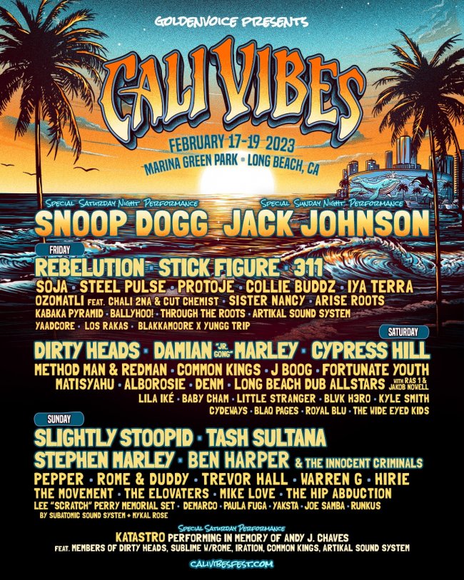 Source : reggaefestivalguide.comCALIFORNIA VIBRATIONS FESTIVAL “Cali Vibes 2022” FRIDAY FEBRUARY 4